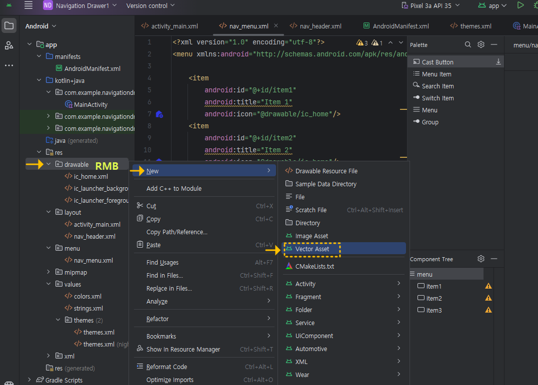 | 【AndroidStudio】 Kotlin Navigation Drawer(코틀린 네비게이션 드로어-사이드메뉴) 활용하기 (1) | 2024.12.02 |
