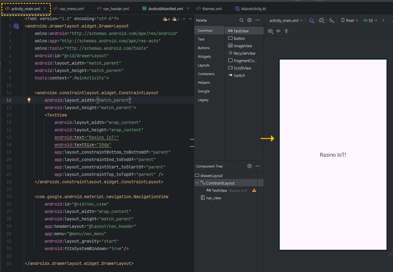 ⑥ activity_main.xml 파일은 아래와 같이 구성해 주세요.