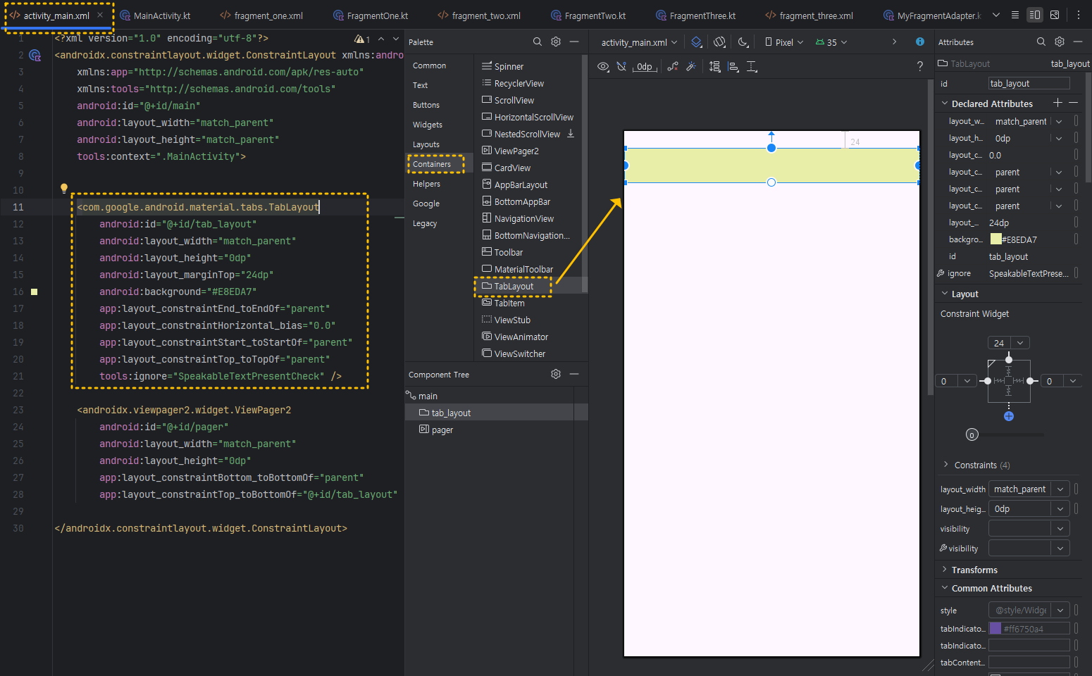 | 【AndroidStudio】 ViewPager2(뷰페이저2) 실습 #2 <Tab Layout & 텍스트 에디트 추가하기> (2) | 2024.11.24 |