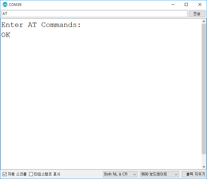 1. 성공적으로 AT 모드 진입시 , " AT ⏎ " 입력하면 아래처럼 OK 싸인이 뜬다.