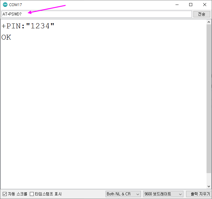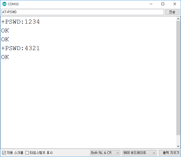 - 패스워드 확인 명령어 : AT+PSWD? ⏎