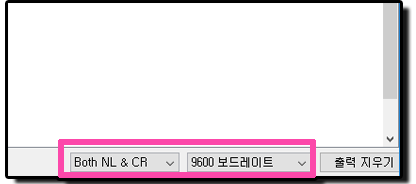 - 주의! 아두이노 코드와 시리얼 모니터의 통신 속도와 방법을 아래처럼 일치 시킨다.