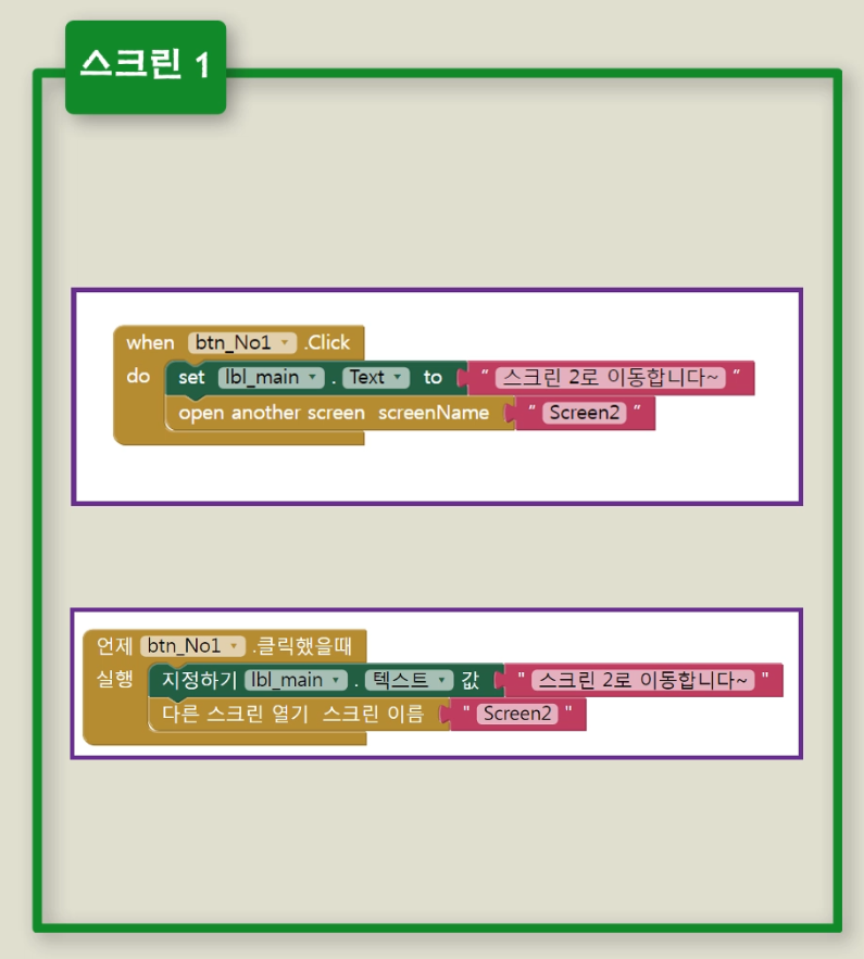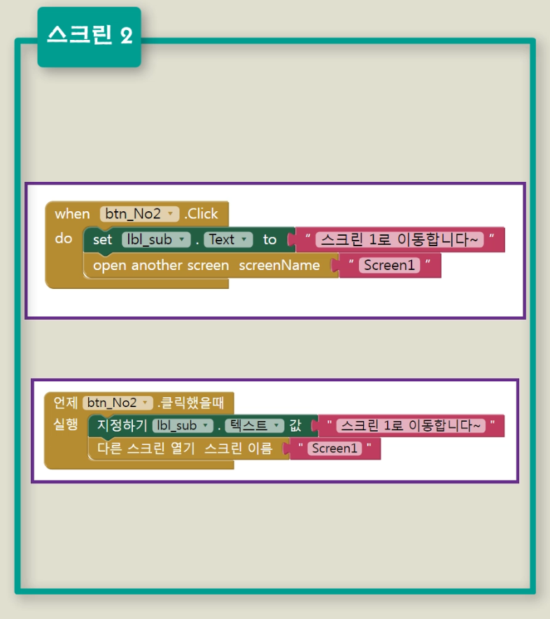 ④ 2번 화면에 대한 '코드 블록' 만들기