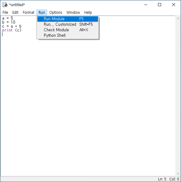 3. 작성한 코드를 Run메뉴에서 실행시킨다.