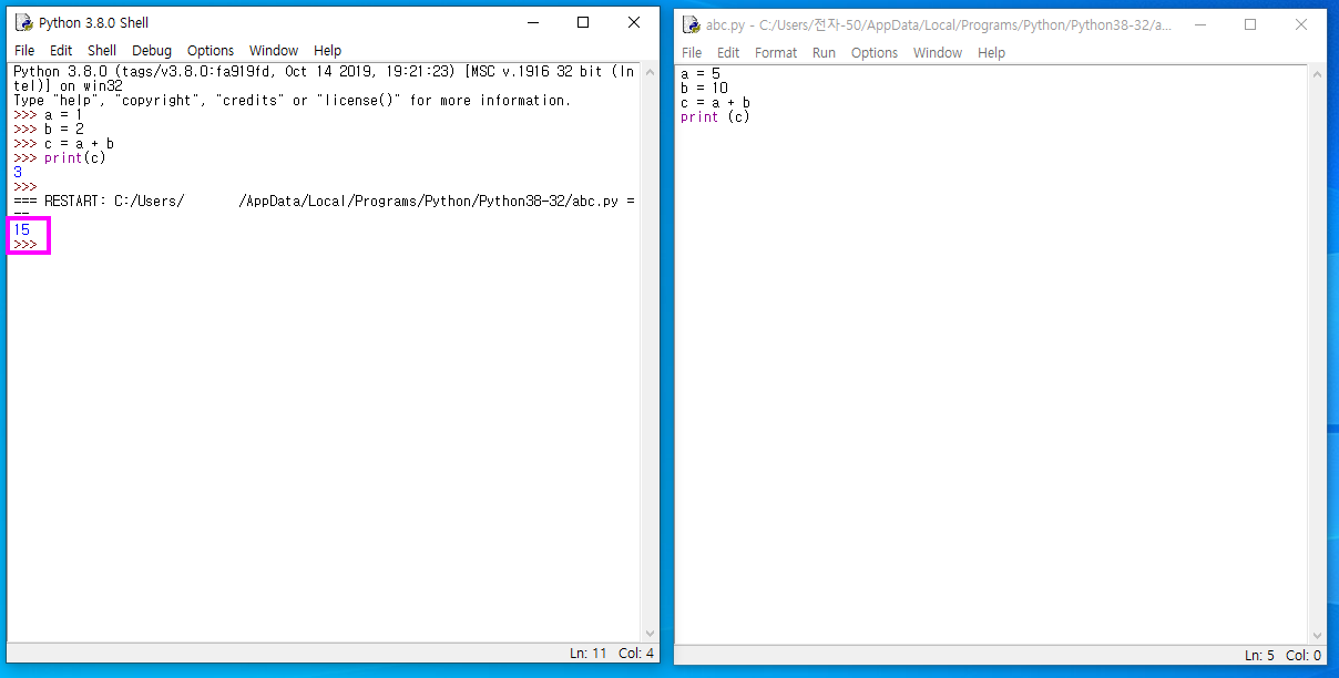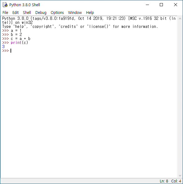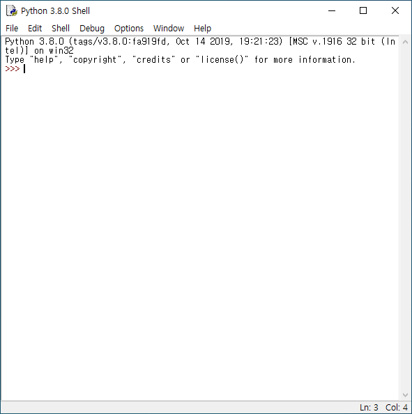 ② 파이썬 쉘환경의 IDE인 'IDLE' 실행한 모습