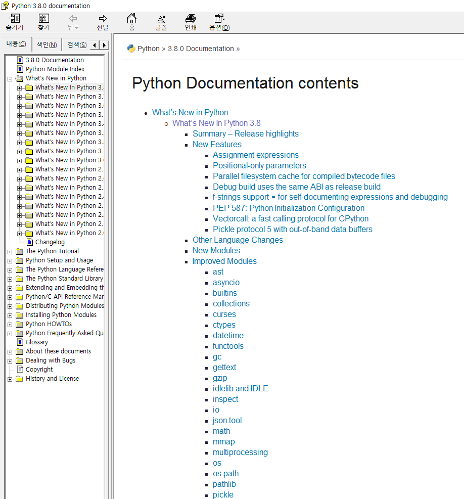 ① 파이썬에 설치 되는 모듈들에 대한 도큐멘트(Documents)를 살펴 볼 수 있는 페이지