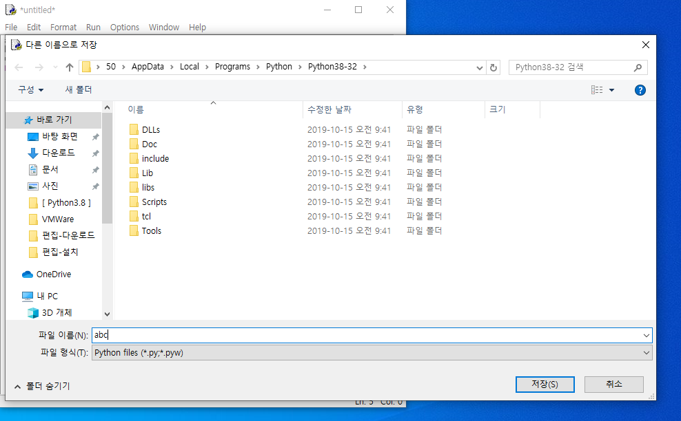 4. 파일을 저장하고 실행시키기 위해 파일 이름을 물어 온다.