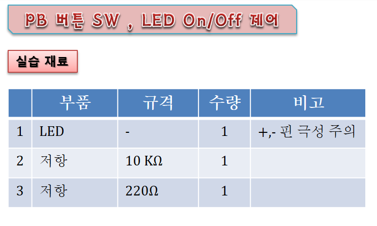 - 이 번 개념을 잘 이해하면, 입력에 버튼이 아니라 각종 센서를 대체하고, 출력에 LED가 아니라 모터나, LCD등의 디스플레이 등으로 연결하면, 활용가능성이 무한대로 늘어나고 이를 제어 할 수 있는 기본기를 익히는 것이기 때문에 이후 학습에 있어서 매우 중요하다고 할 수 있습니다.