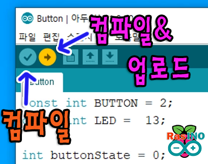 (컴파일 후 에러가 없는지 확인하고 아두이노로 코드를 업로드 합니다)