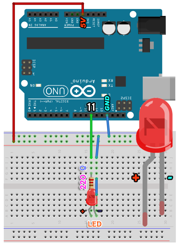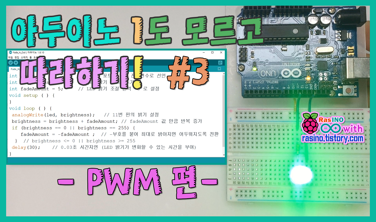 analogWrite(led, brightness); // 11번 핀의 밝기 설정