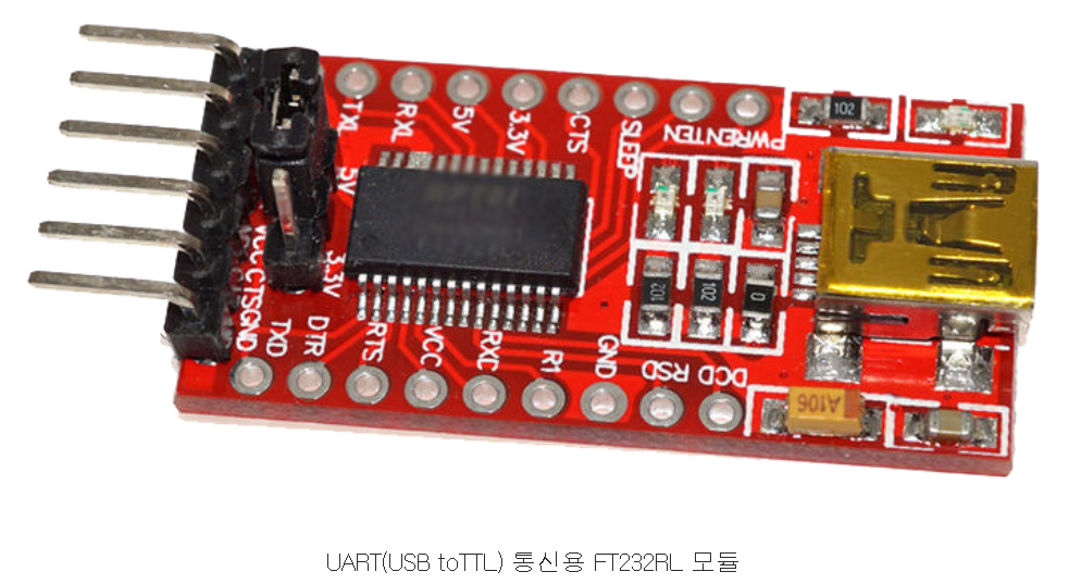 1. 아두이노 코드 전송을 위해 아래와 같은 PC와의 UART통신용 'FT232RL' 과 같은 모듈을 준비한다.