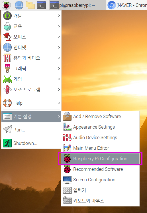 [ 메뉴 ≫ 기본 설정 ≫ Raspberry Pi Configuration ]