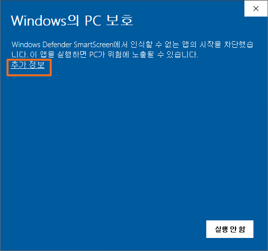 그럼, 당황하지 말고, 화면 중간에 있는 추가 정보 를 클릭해 줍니다.