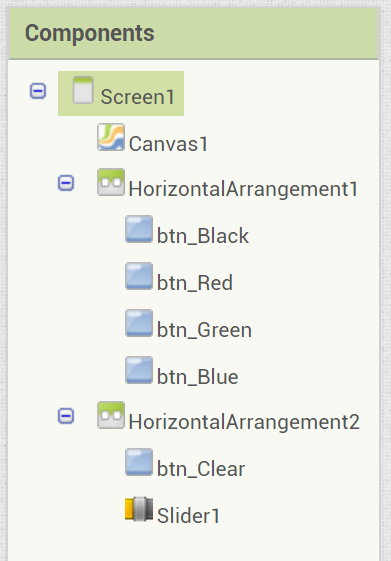 그린 내용을 지울 수 있는 지우기 버튼과 그리기 선의 굵기를 정해줄 슬라이드 컴포넌트를 배치할 텐데요.