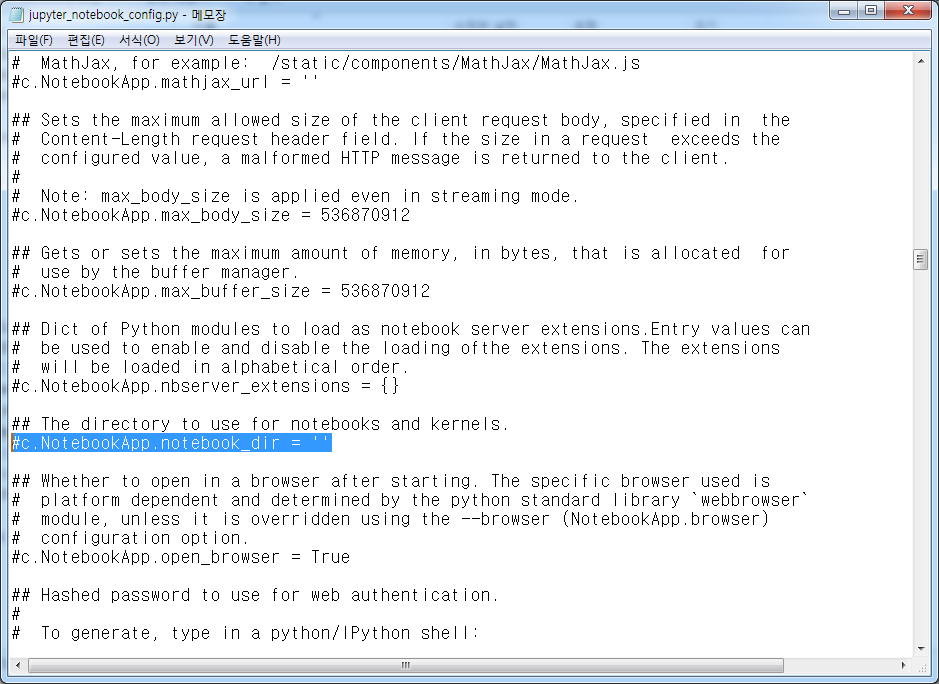 파일내용 길어서 Ctrl+F 키를 눌러 'notebook_dir' 입력하여 찾으면 바로 찾으실 수 있습니다.