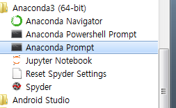 윈도우 실행창에서 'cmd' 입력하여 '커맨드명령어창'을 띄우거나, 아나콘다 설치후 등록되는 '아나콘다 프롬프트' 를 실행시킵니다.