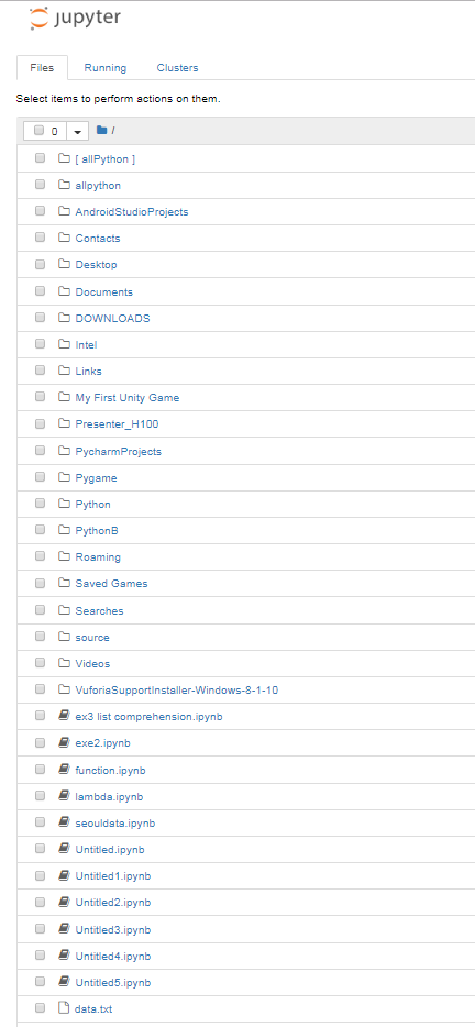 그럼 아래처럼 아주 깔끔한 폴더와 함께 , 주피터 노트북 실행도 매우 빨리 될 거예요. ^^