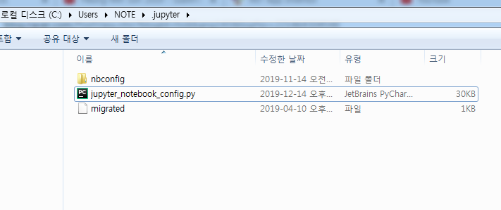 >jupyter notebook --generate-config (엔터)