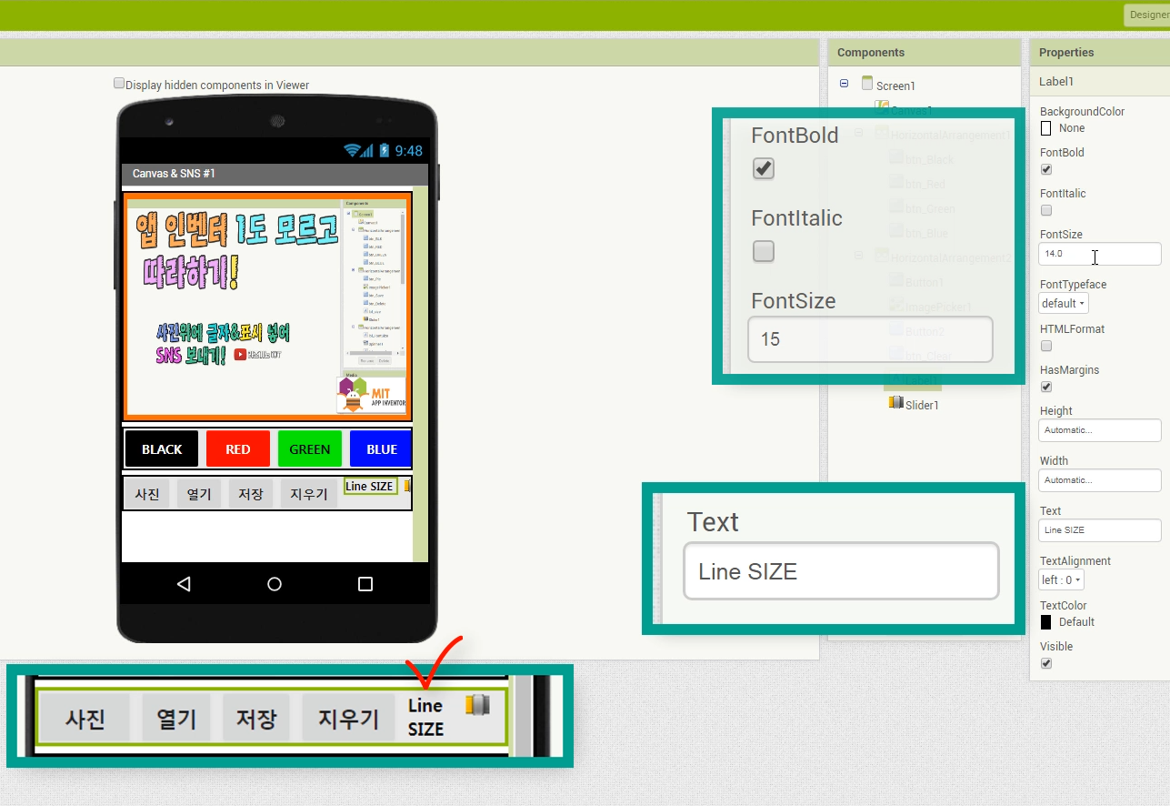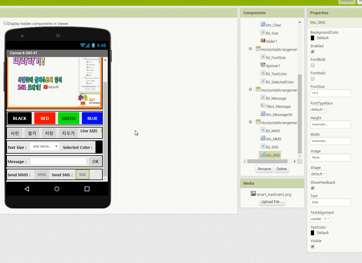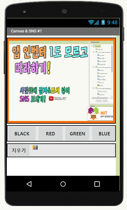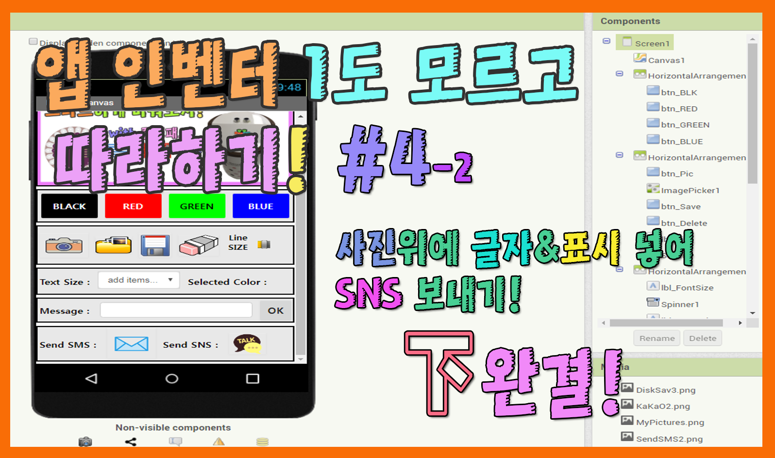 【 앱인벤터기초 #07】 앱인벤터 1도 모르고 따라 하기 영상 실습#5 (사진/글자표시/SNS보내기 앱下-완결!)