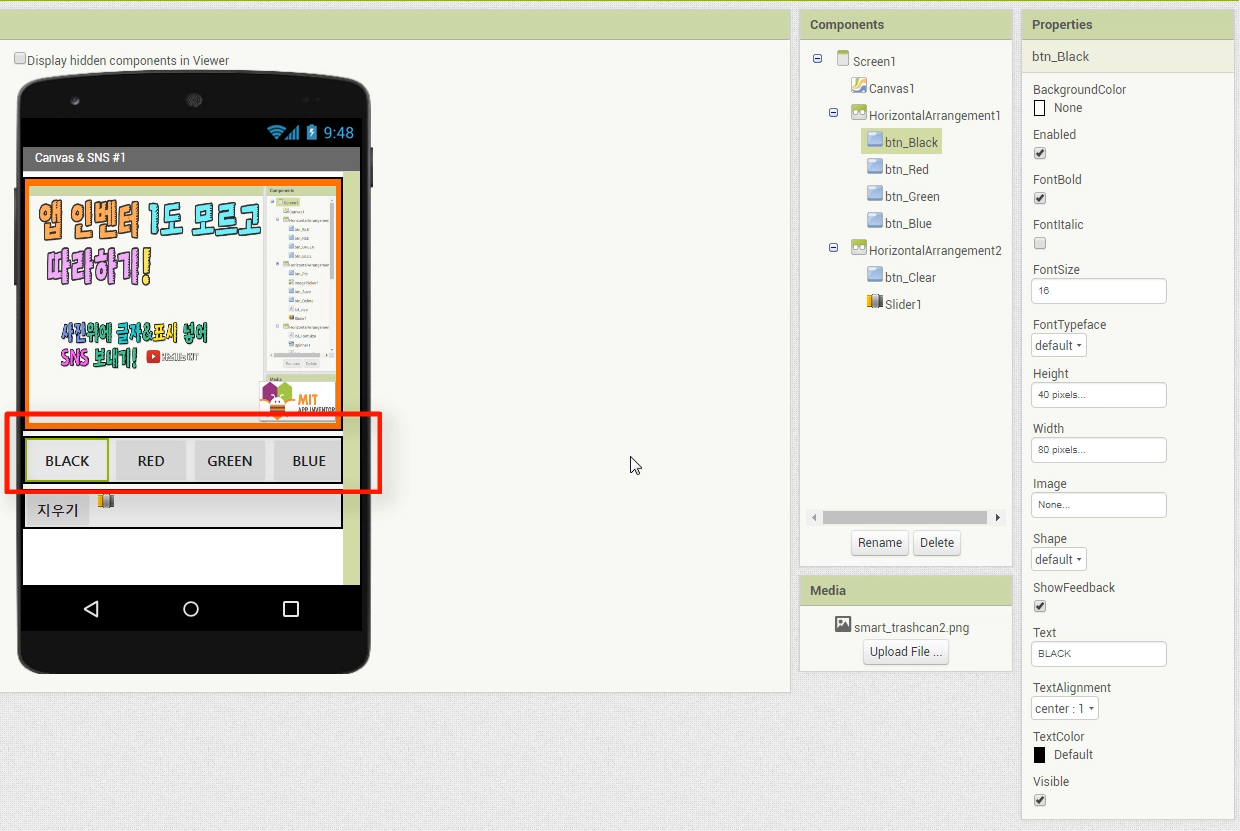 【 앱인벤터기초 #03】 앱인벤터 따라하기 실습#1(메뉴화면소개 및 사용법)