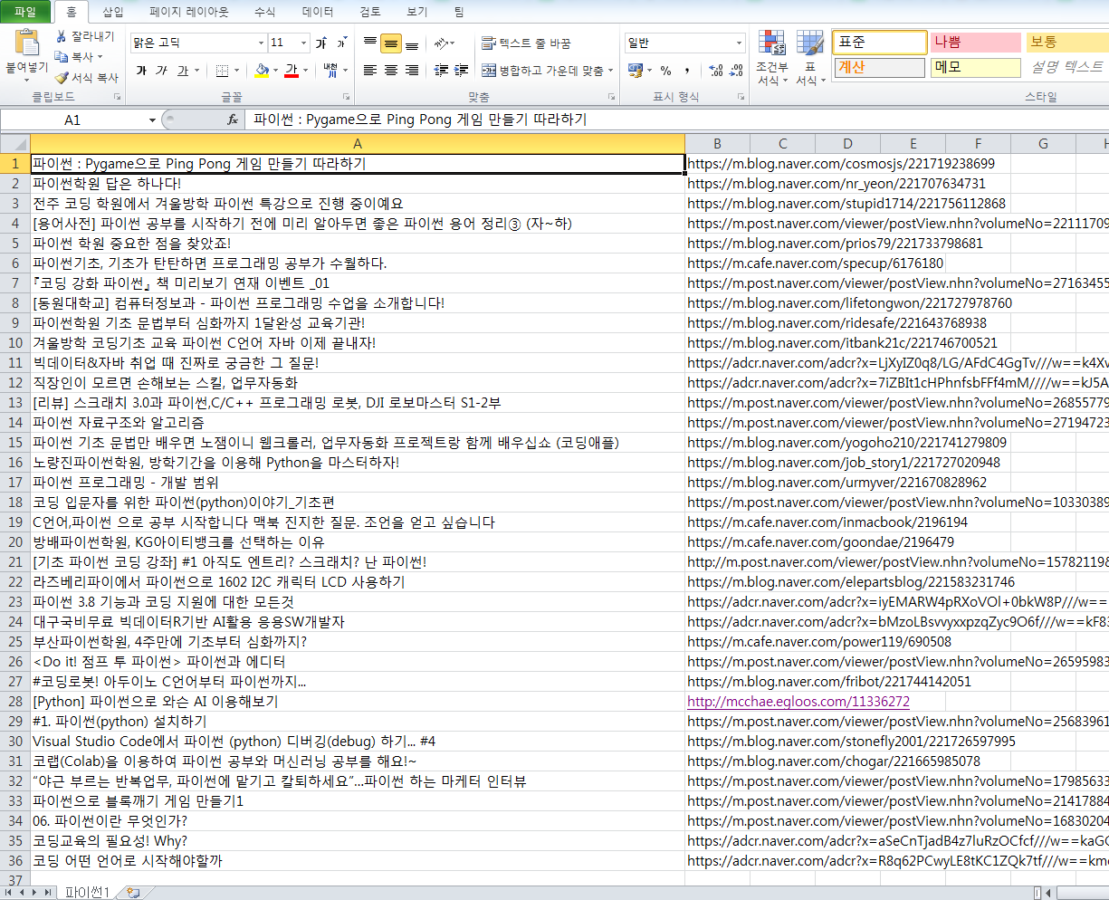 【파이썬 응용】 파이썬 웹 크롤링#2(Web Crawling) -검색결과를 csv파일로 저장하기