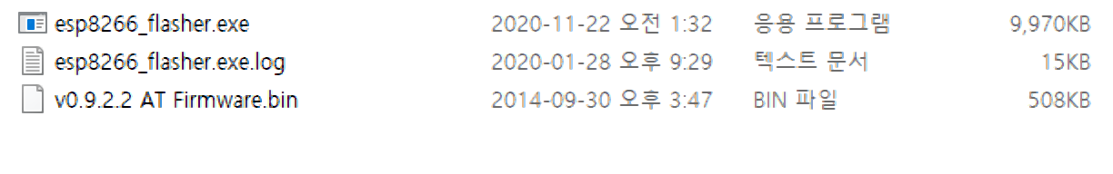 기본적으로는 esp8266은 AI-Thinker사의 AT-커맨드, 즉 명령어 기반의 AT 명령어를 수신하고 해당 명령어를 실행할 수 있는데, 이를 적절히 사용하기 위한 버전의 펌웨어로 업데이트(교체) 하고자 하거나, esp8266의 보-레이트(Baud Rate)를 변경하고자 할 때 진행하게 됩니다. 본 실습에서는 최신 버전 펌웨어로 업뎃을 하는 것은 아닙니다. 실습을 진행하는데 문제가 없는 안정된 버전으로 펌웨어 교체를 하는 것이며, 가지고 있는 다른 버전의 펌웨어로 교체해도 되지만, 보-레이트가 맞지 않거나 할 경우 등, 실습에 문제가 있을 수 있으므로, 여기서 제공하는 펌웨어로 실습을 진행해 보고 다른 버전으로도 테스트를 해보세요.