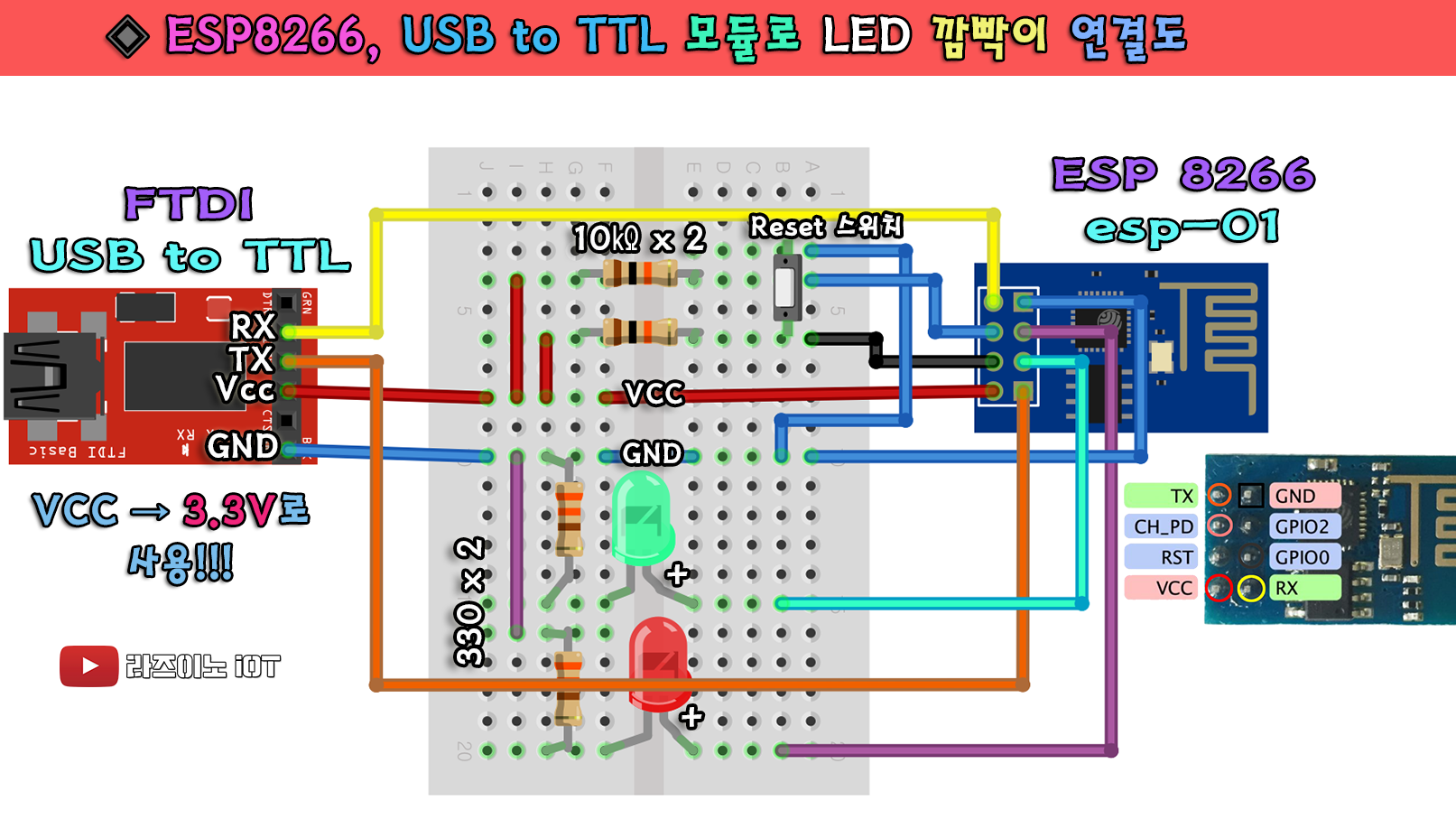 【 #4 ESP01(LEDx2) ↔ USBtoTTL 연결도 】