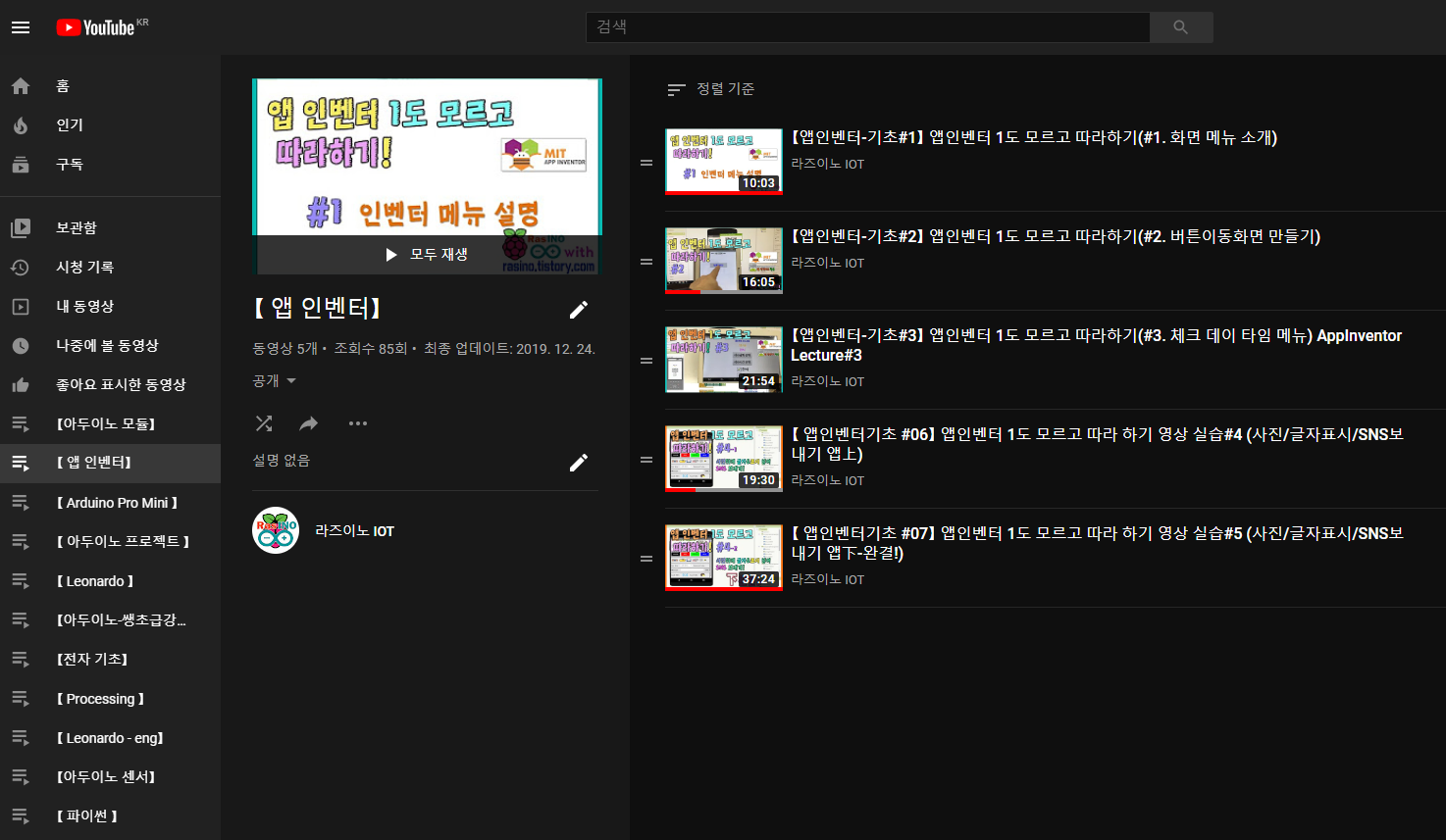 또는 유튜브에 올린 앱인벤터 기초강좌를 보셔도 좋아요.