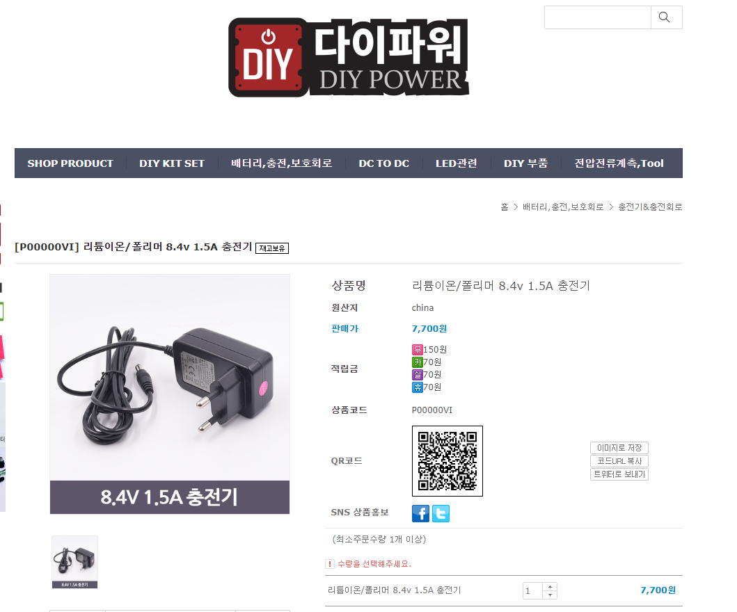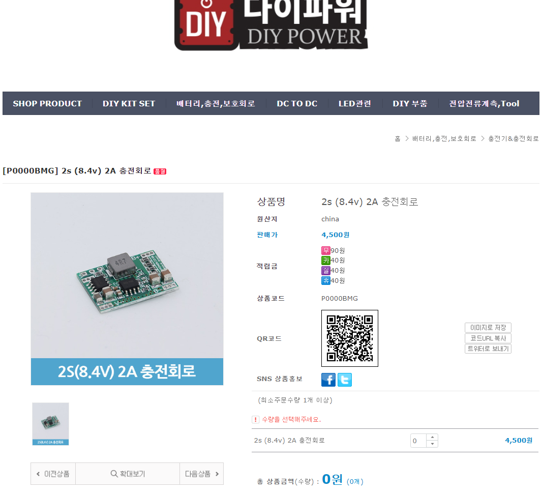 그리고 그냥 전압만 맞추어 주면 되는 것이 아니라, 입력되는 전류도 과전류가 유입되지 않도록 제한되어 충전해 줄 수 있는 전용 충전기가 필요해요. 예를 들면, 두개 직렬 충전 8.4V BMS를 사용할 경우 아래와 같은 8.4V 출력의 아답터나 전용 모듈을 이용해야 안전합니다.