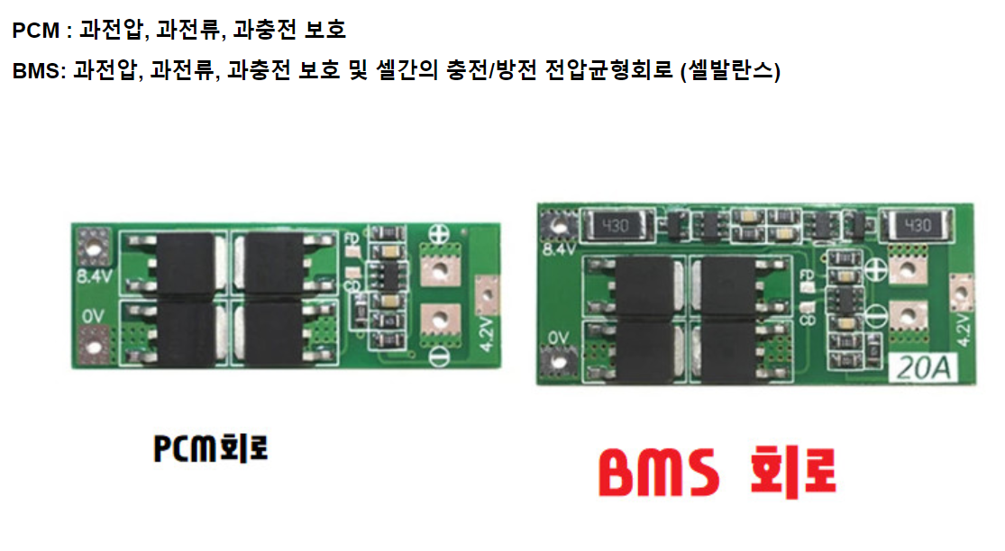 일반적으로 판매하고 있는 제품 중에 저가형(PCM)의 경우 BMS도 같이 병기해서 판매하고 있지만, PCM기능이 주요 기능이며, BMS기능이 제대로(충실히) 적용 되지 않을 수도 있습니다.