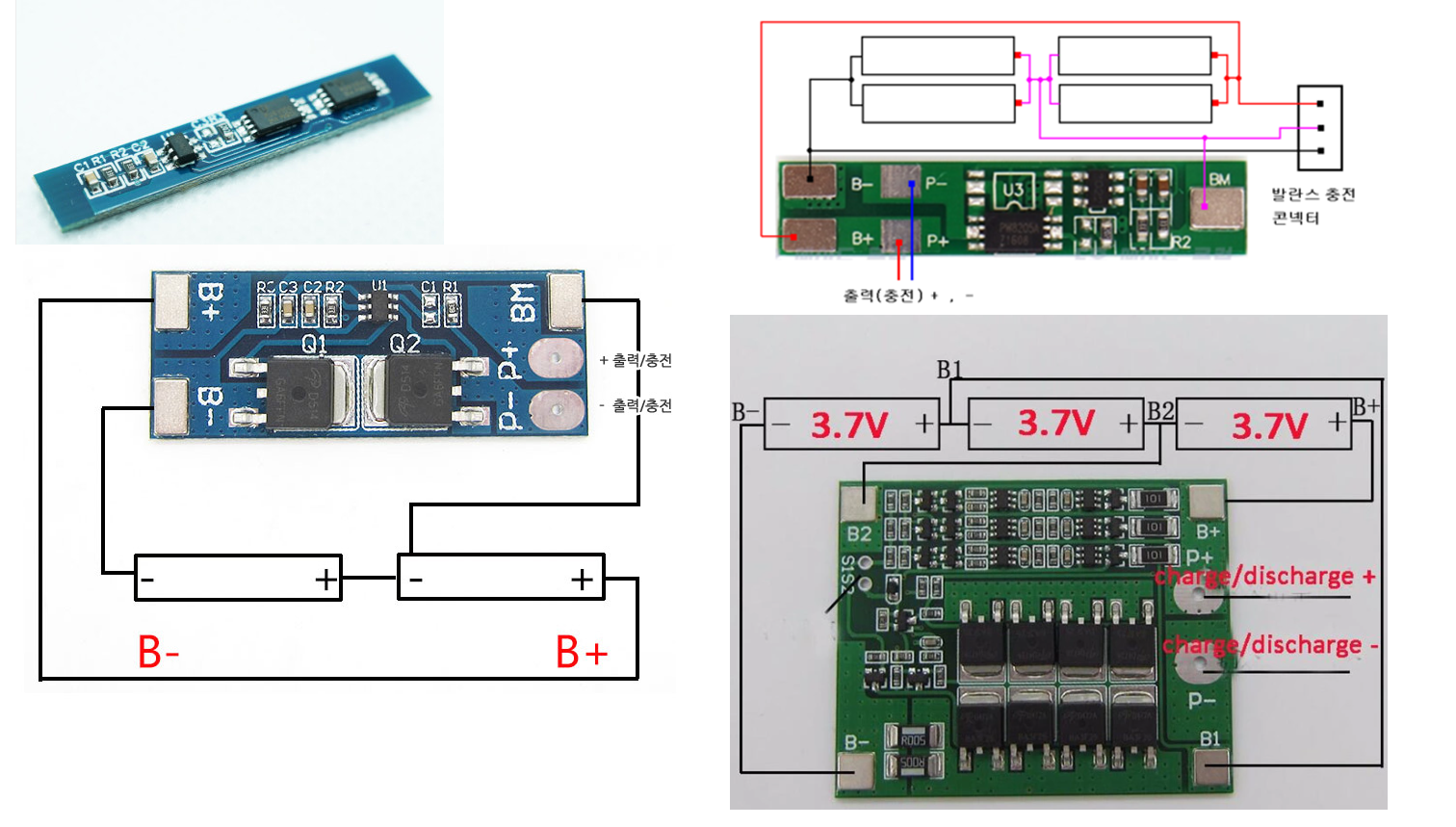 - BMS는 연결되는 배터리 수량과 충전 용량(전류)에 따라 다양한 모듈이 나와 있으니 스팩을 확인하여 구매후 사용해야 합니다.