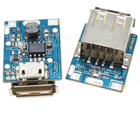 TP4056 보호기능과 5V 전압 업 기능이 합쳐진 134N3P 이라는 이름의 아래와 같은 스텝업 모듈을 사용합니다.