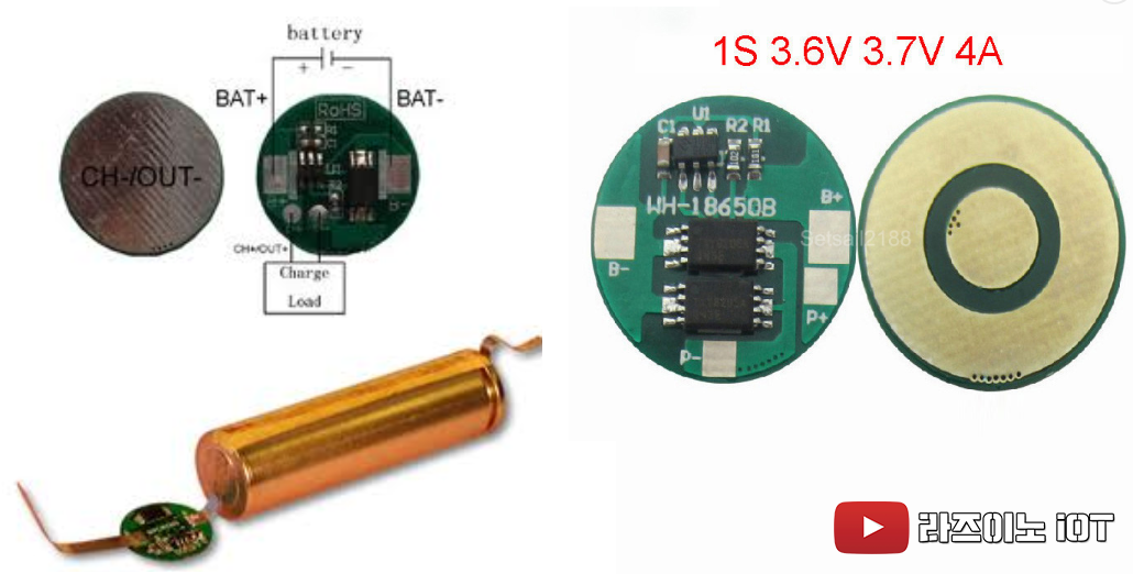 아래 사진에 보이는 것 처럼, 위 사진속의 보호회로 있는 18650 배터리에 이런 PCM회로가 들어가 있습니다.