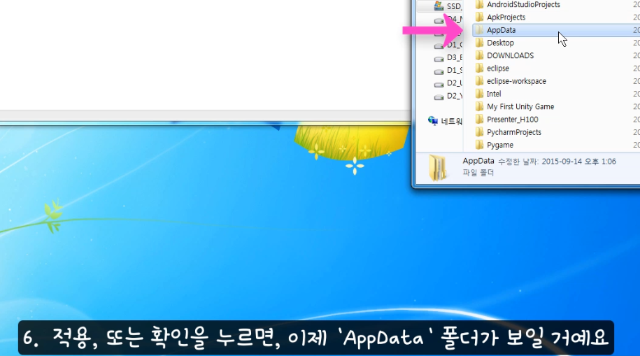 이 기능을 변경해야, 숨겨진 'AppData 폴더로 이동 할 수 있습니다.