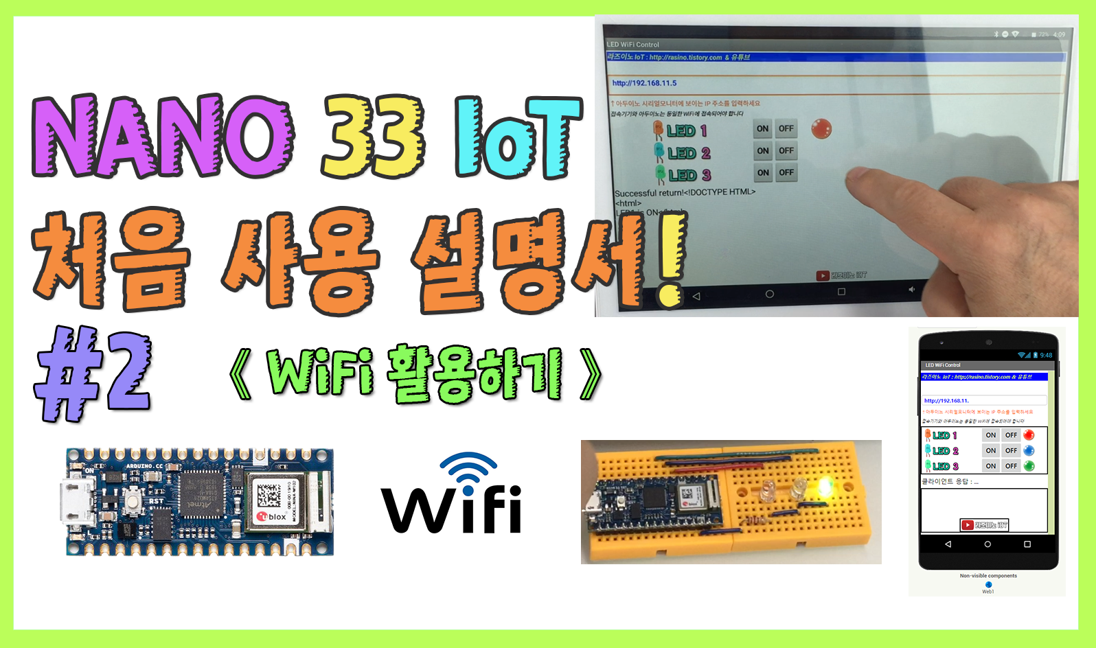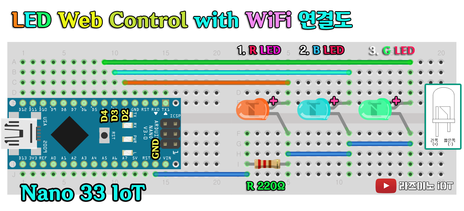 - 현재 nano 33 iot 보드와 스마트기기는 동일한 WiFi 공유기로 접속되어 있어야 제어가 가능합니다.