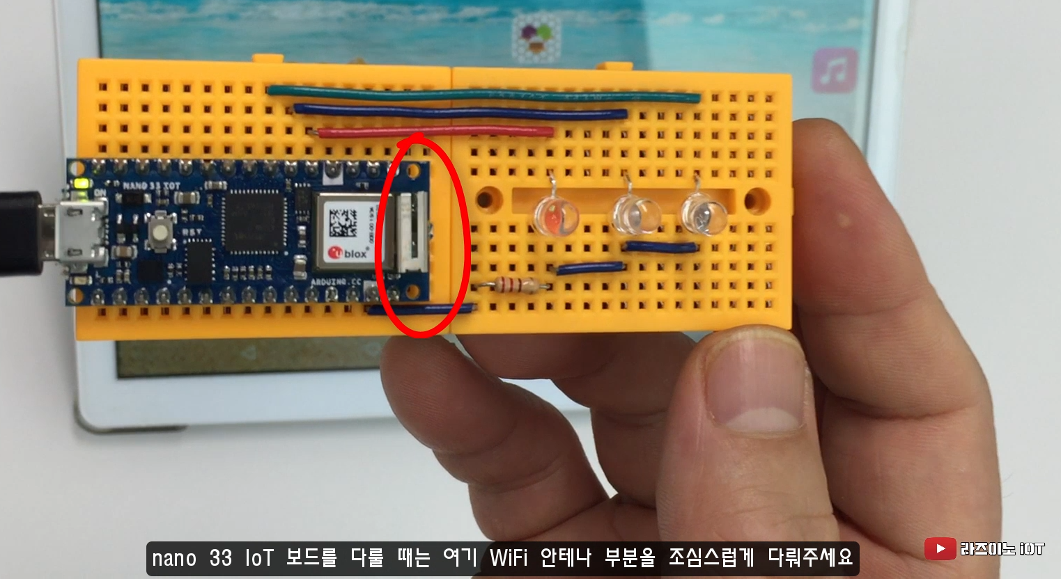 nano 33 IoT 보드를 다룰 때는 아래 WiFi 안테나 부분을 주의해서 다루어 주세요.