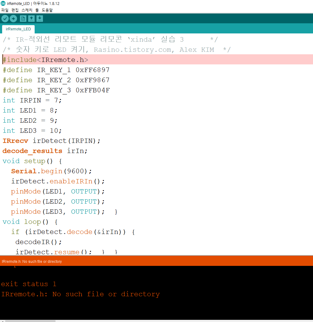 1. 적외선 리모트 센서를 구동시키기 위한 코드를 컴파일 해보았는데요,