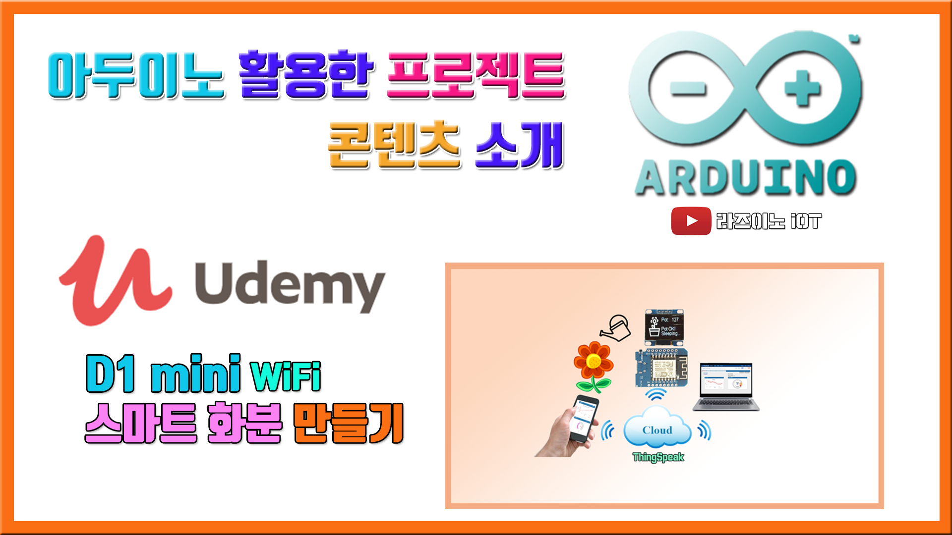 ▶ 시청 방법 : 위 링크를 따라 Udemy.com 에 접속하여 회원가입 하고, 검색창에 "스마트 화분" 검색 후 위 영상을 구매 후 이용하시면 됩니다.