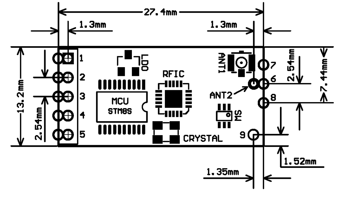 - 모듈에 MCU가 내장되어 있어 모듈에 별도의 프로그래밍을 해줄 필요 없이 시리얼포트를 통한 AT 명령으로 전송 모드를 선택하거나 설정을 제어할 수 있습니다.