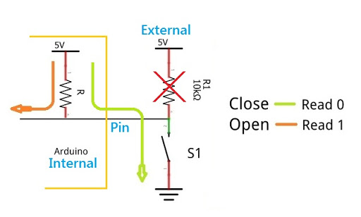pinMode ( 5, INPUT ); 이렇게 작성하나, 풀업 기능의 입력을 사용할 경우에는