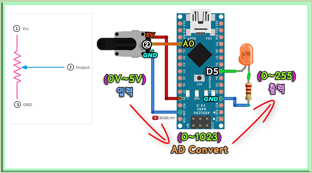 실습 #5는 가변저항을 돌려서 RF 통신으로 원격 회로의 LED 밝기를 조절해 보는 실습입니다. 이번 실습을 통해, 기본적인 데이터 주고받는 방법과 입·출력 포트 제어를 이해할 수 있습니다.
