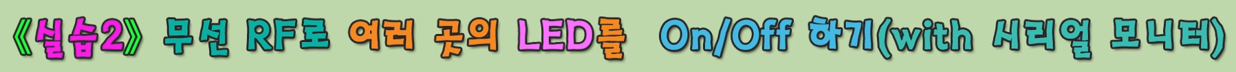 실습 #2에서는 HC12 모듈 간의 RF 통신 실습입니다. 회로를 1대 1, 또는 1대 2이상 구성한 다음, 시리얼 통신 기능을 이용해서 RF를 통해 문자를 주고받고, 받은 문자에 따라 LED를 켜보는 실습입니다.