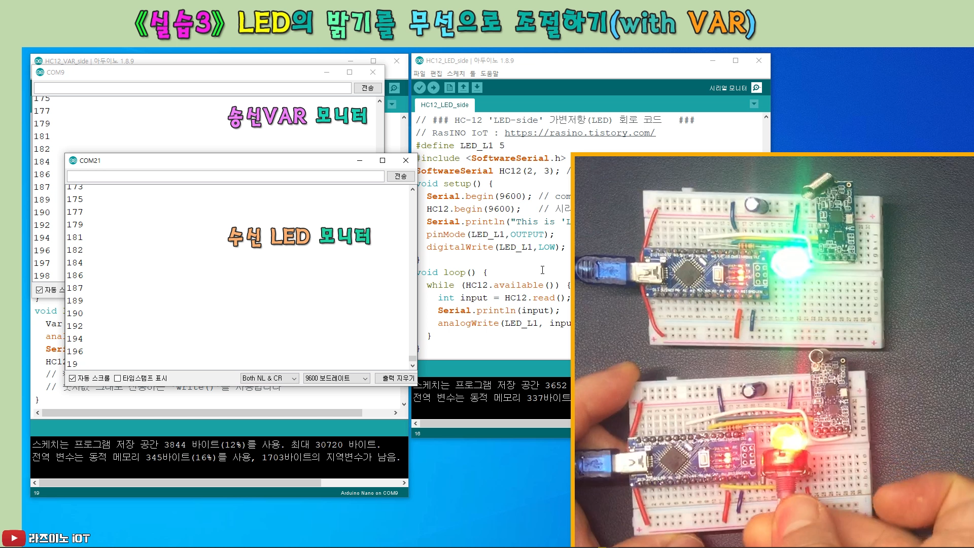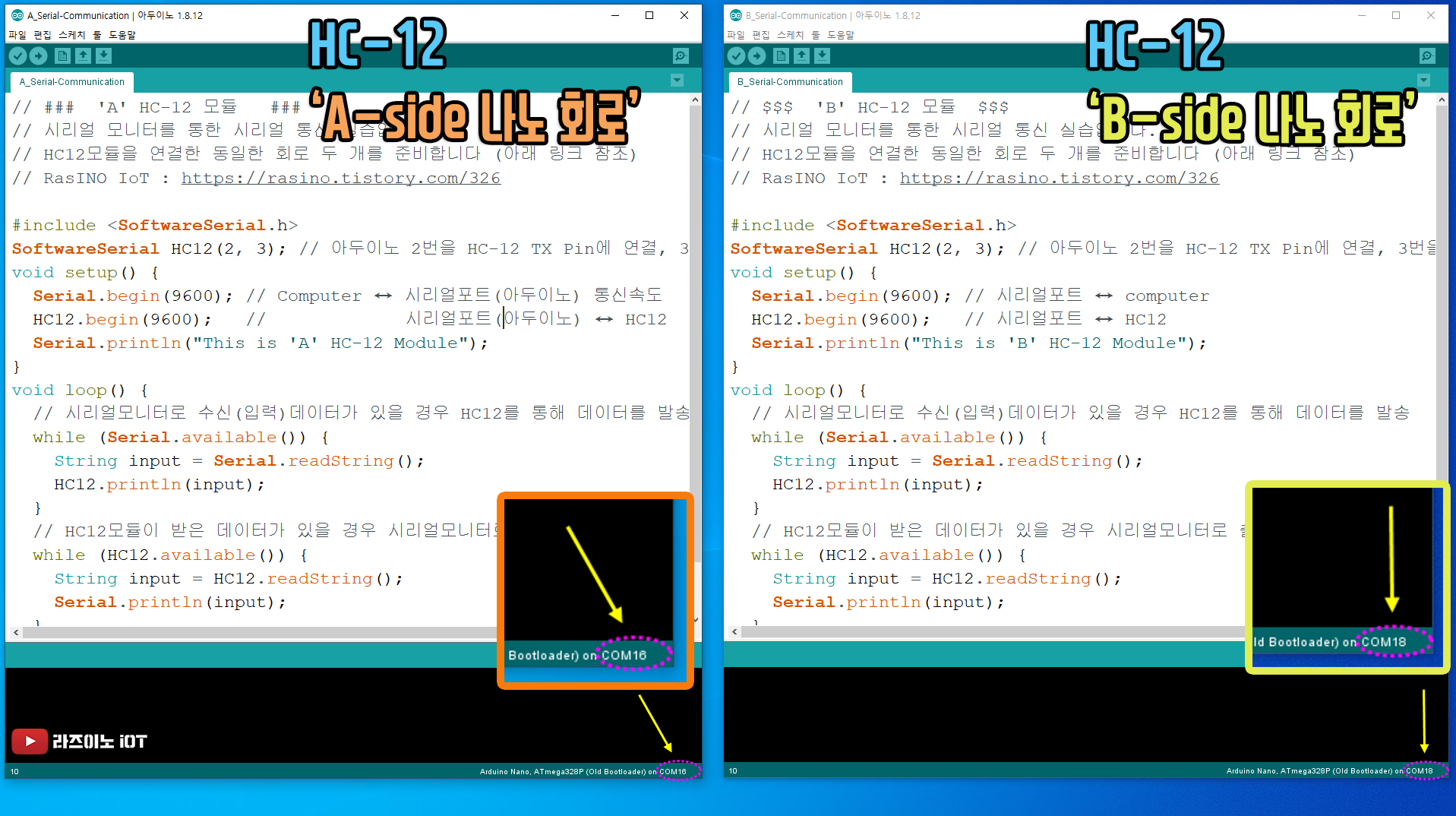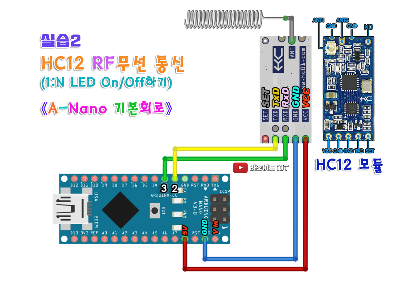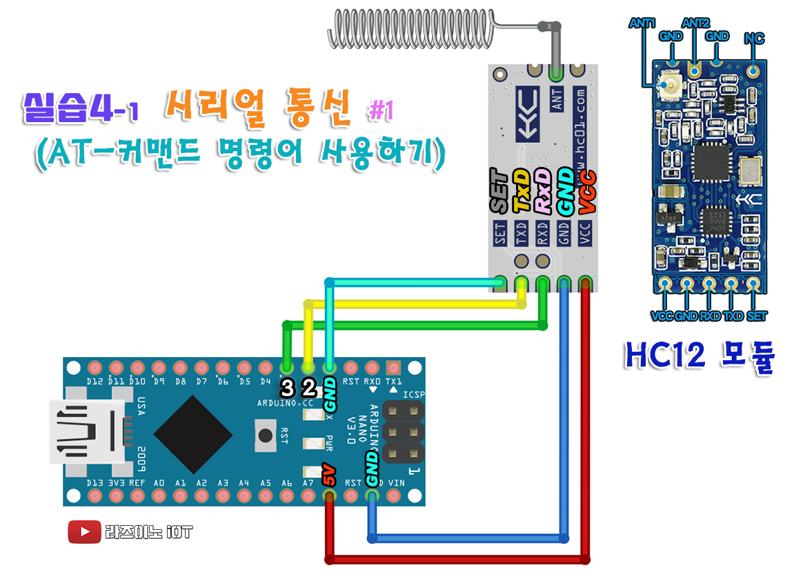 【 실습 #1 】 나노 HC12회로 두 대를 이용한 시리얼 통신 실습
