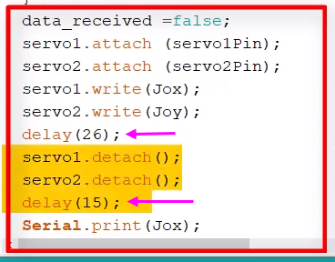 실습 #6은 조이스틱 모듈 하나로 원격의 서보모터 두 대를 제어해 보는 실습입니다. 보통 실습 2에서 처럼 무선으로 수신되는 데이터가 한 가지라면, 처리하기 쉽지만, 조이스틱 모듈에서 나오는 두 가지 데이터를 수신받아, 두 개의 서보모터(x, y) 데이터로 각각 분리하여 다루는 코딩 방법을 익히게 됩니다. 서보 모터를 다룰 수 있게 되면, DC 모터는 더 편하게 다룰 수 있습니다.