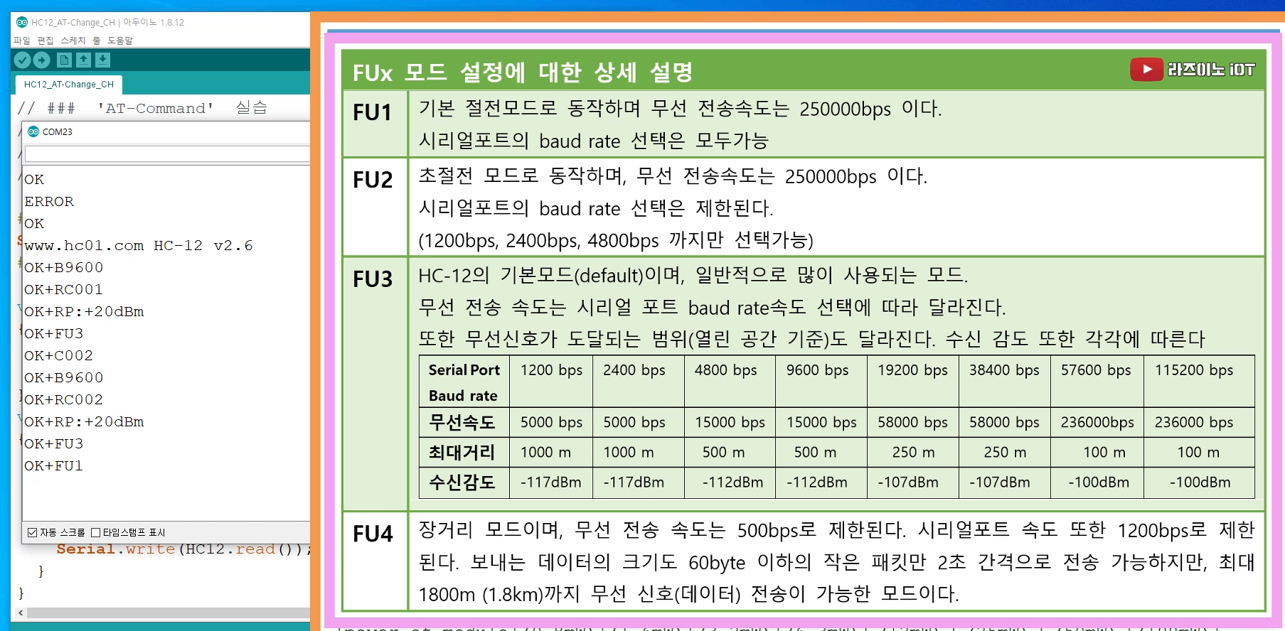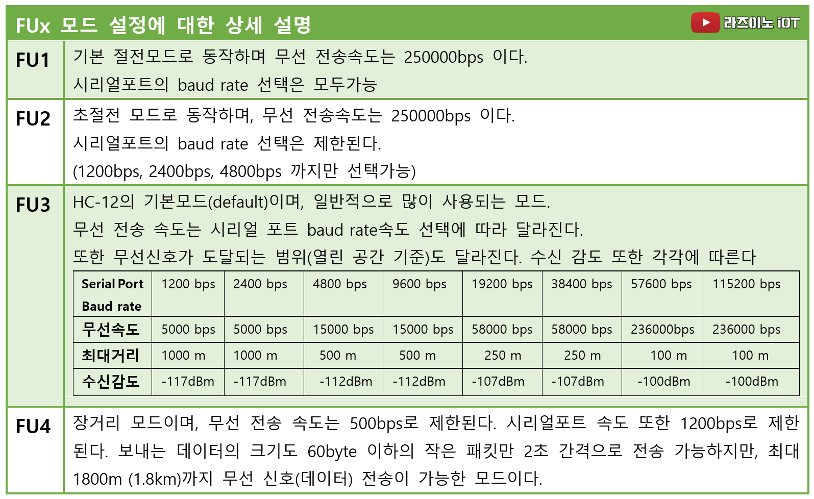 《 HC12의 FUx 모드 설정에 대한 상세 설명 》