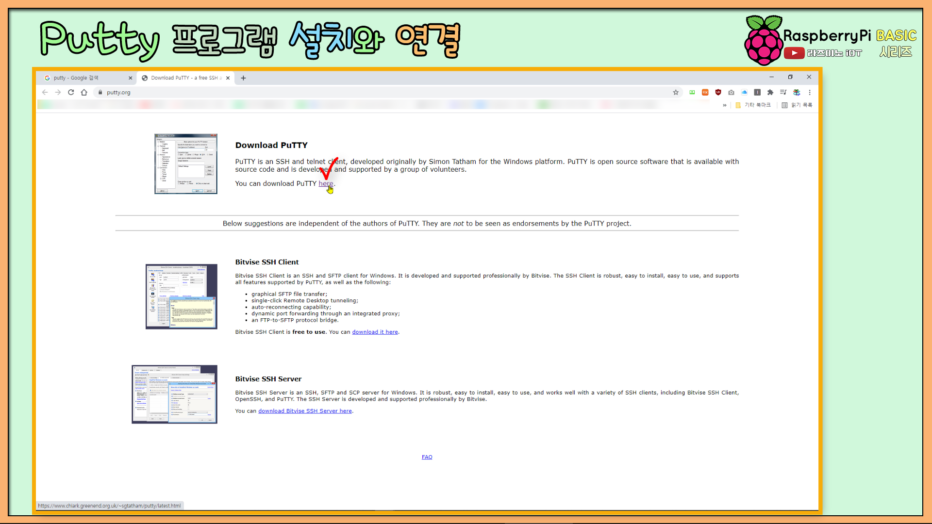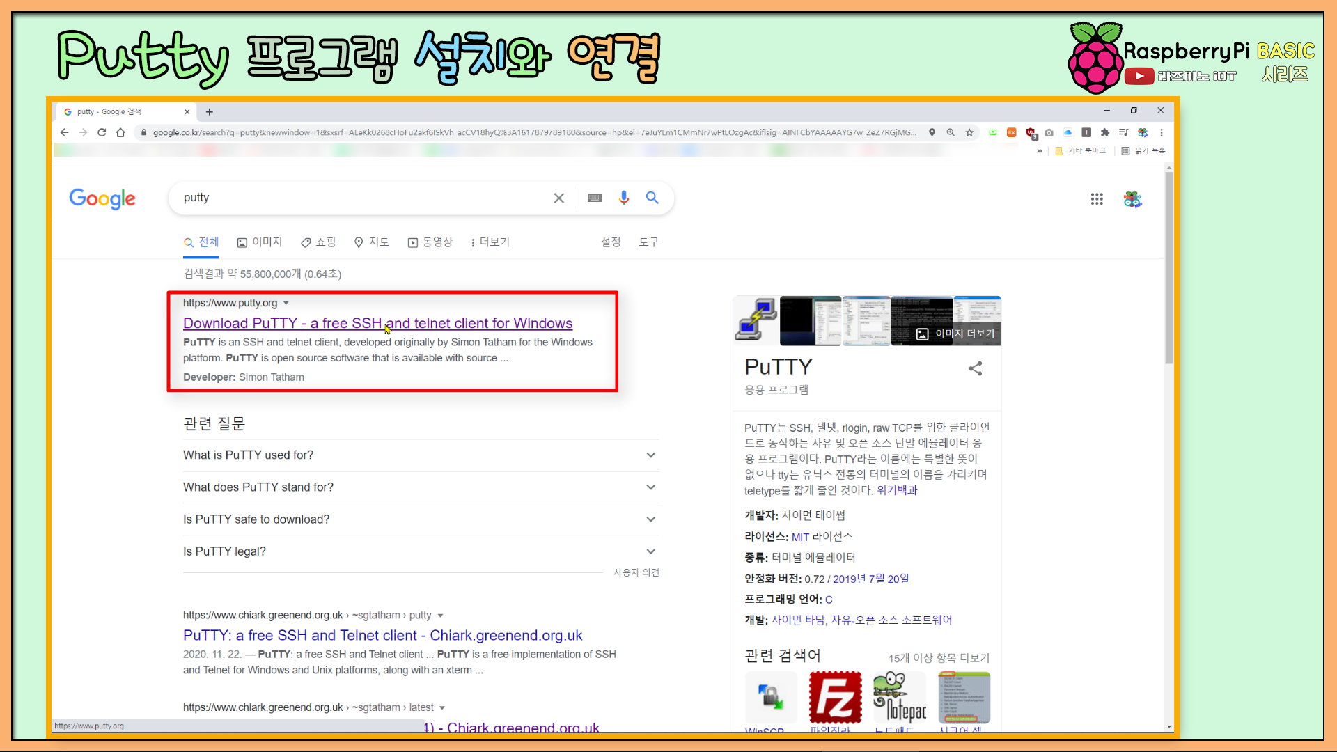 먼저 검색 엔진에 접속해서 'Putty'로 검색합니다. 그리고 Download 페이지를 클릭하세요.