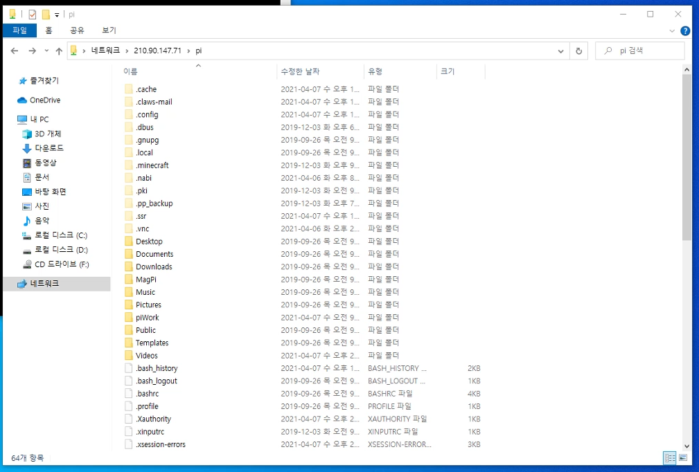 네, 아래 이미지처럼, 라즈베리 pi에서 보았던, 폴더와 파일 목록이 그대로 뜨는 것을 볼 수 있습니다.