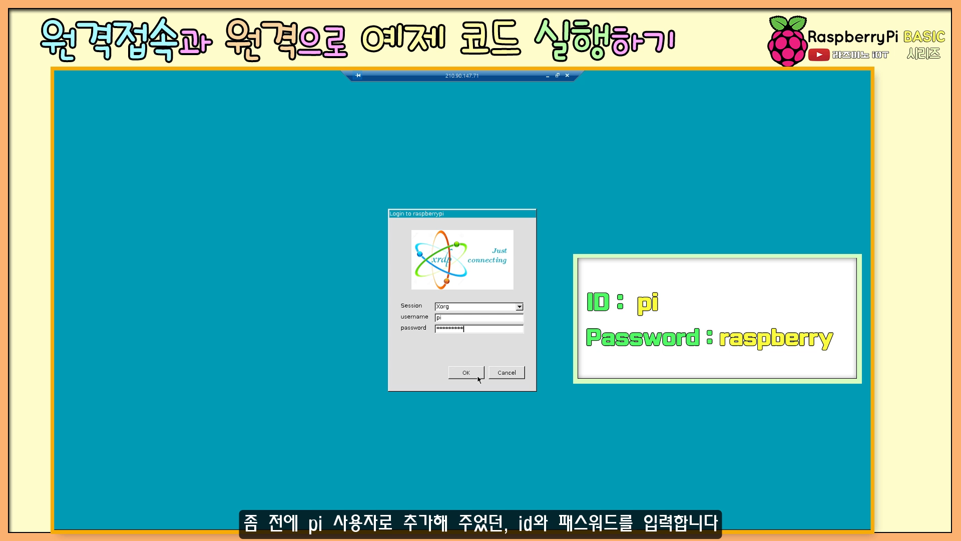 드디어, '윈도 PC'에서 '라즈베리 pi 데스크톱 화면'이 열렸습니다 - 짝짝짝!!! -