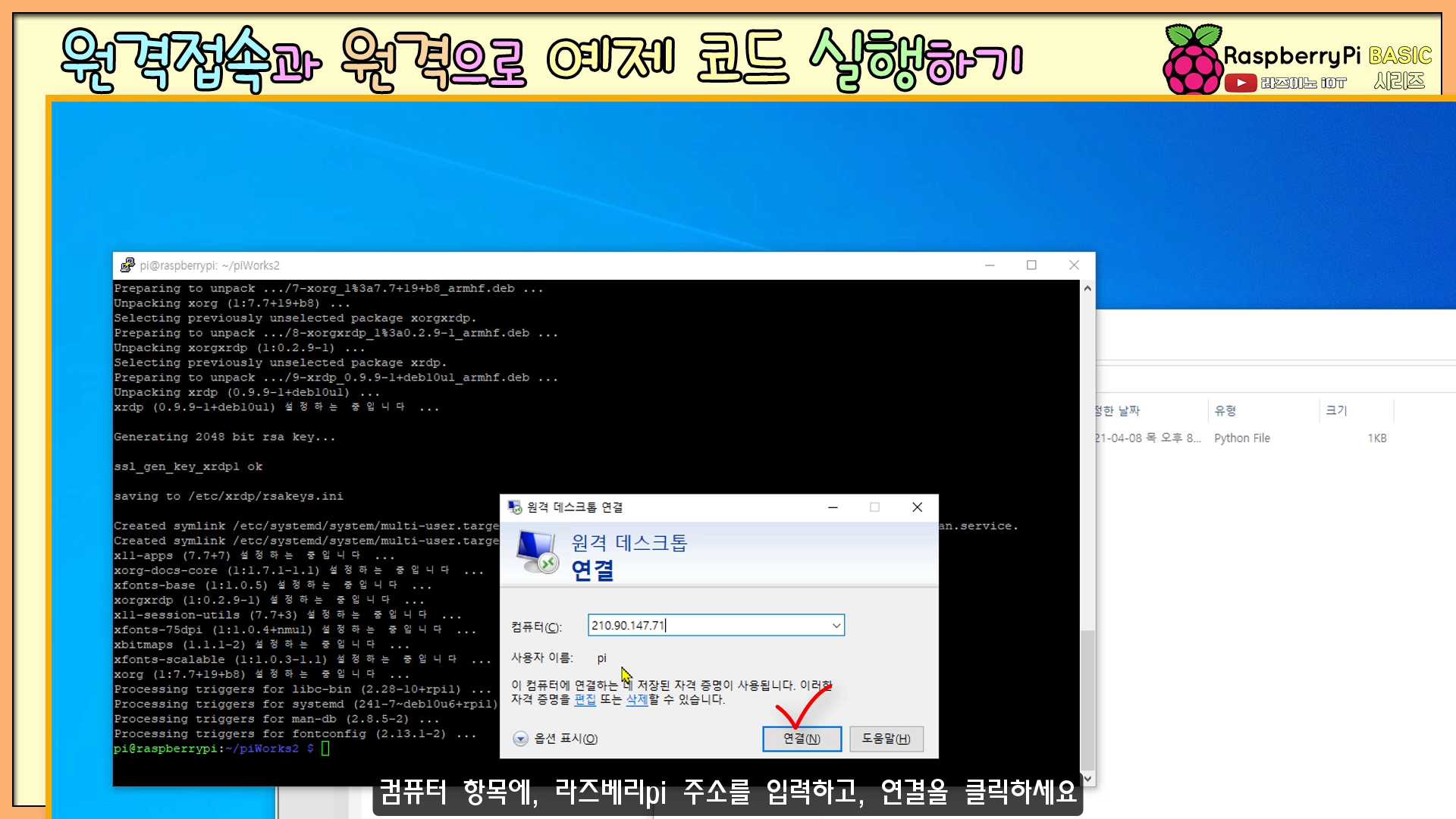 【라즈베리Pi#19】 윈도 PC에서 라즈베리 Pi 원격 제어하기
