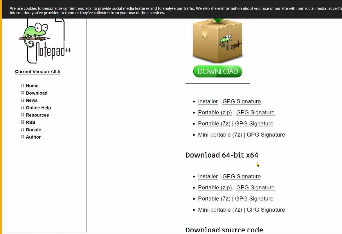 노트패드++은 코딩 전문 툴은 아니지만, 코드를 비교 분석할 수 있고, 가볍게 코딩하거나 편집하기에 정말 좋은 프로그램인데요, 아래 이미지처럼 검색해서 운영체제에 맞는 버전으로 다운로드해 설치하면 됩니다.